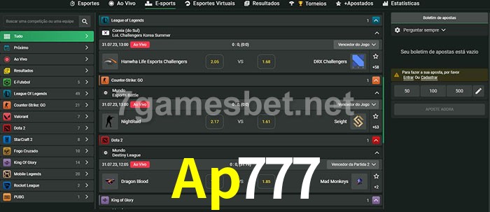 A aposta Ap777 oferece aos jogadores a experiência mais conveniente de apostas em eSports!